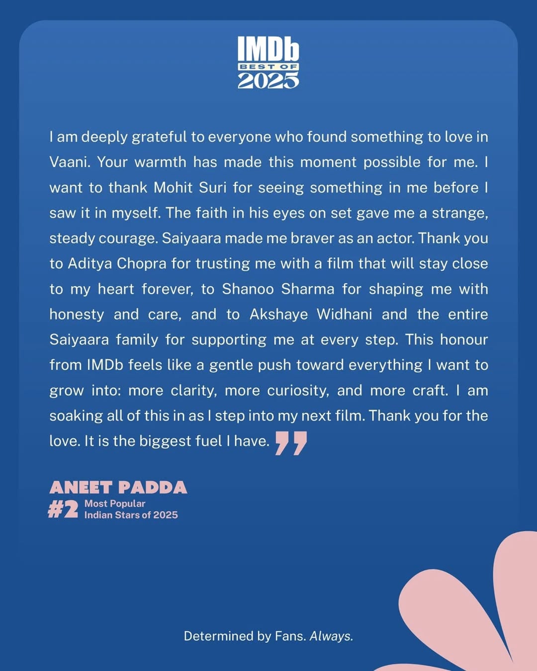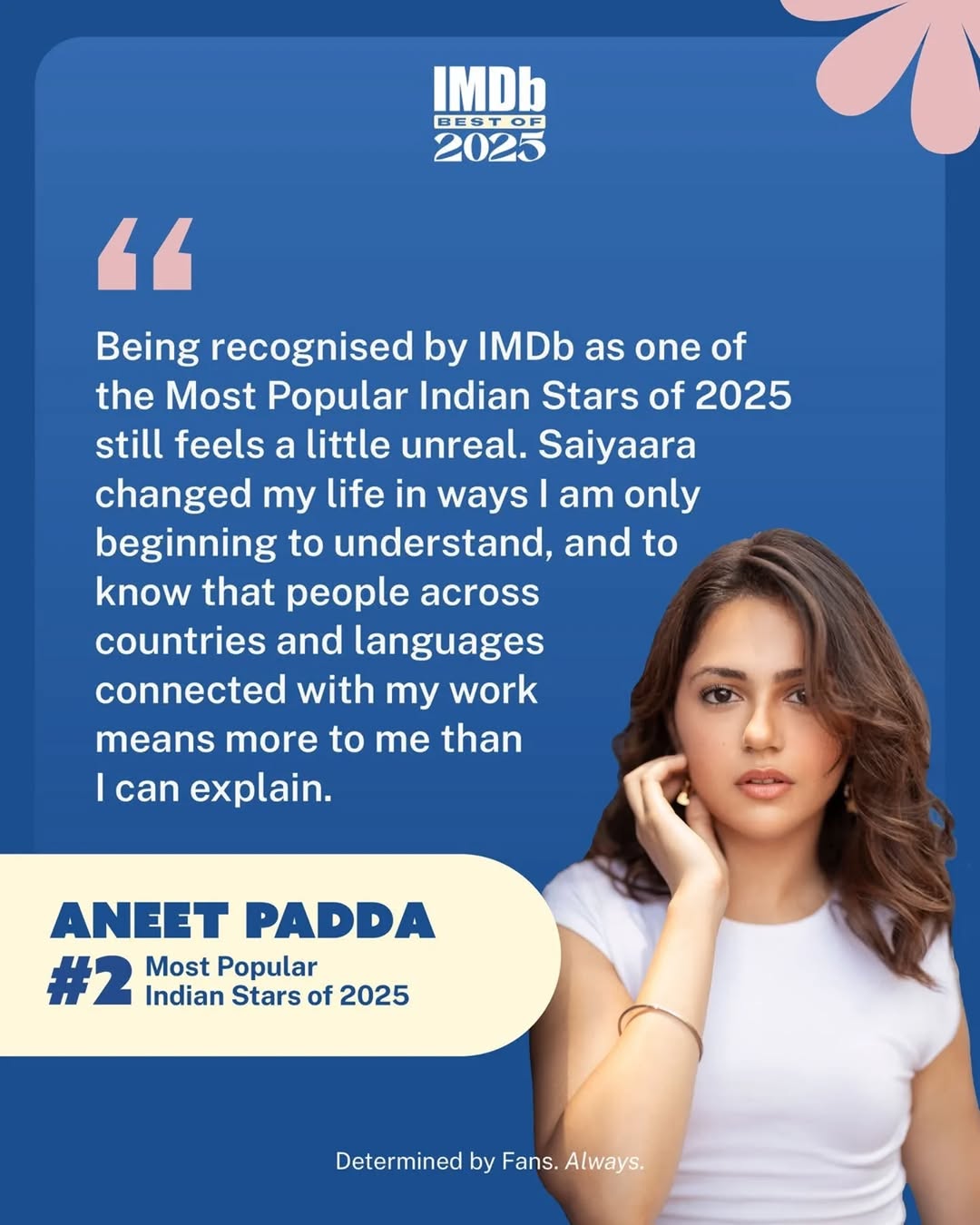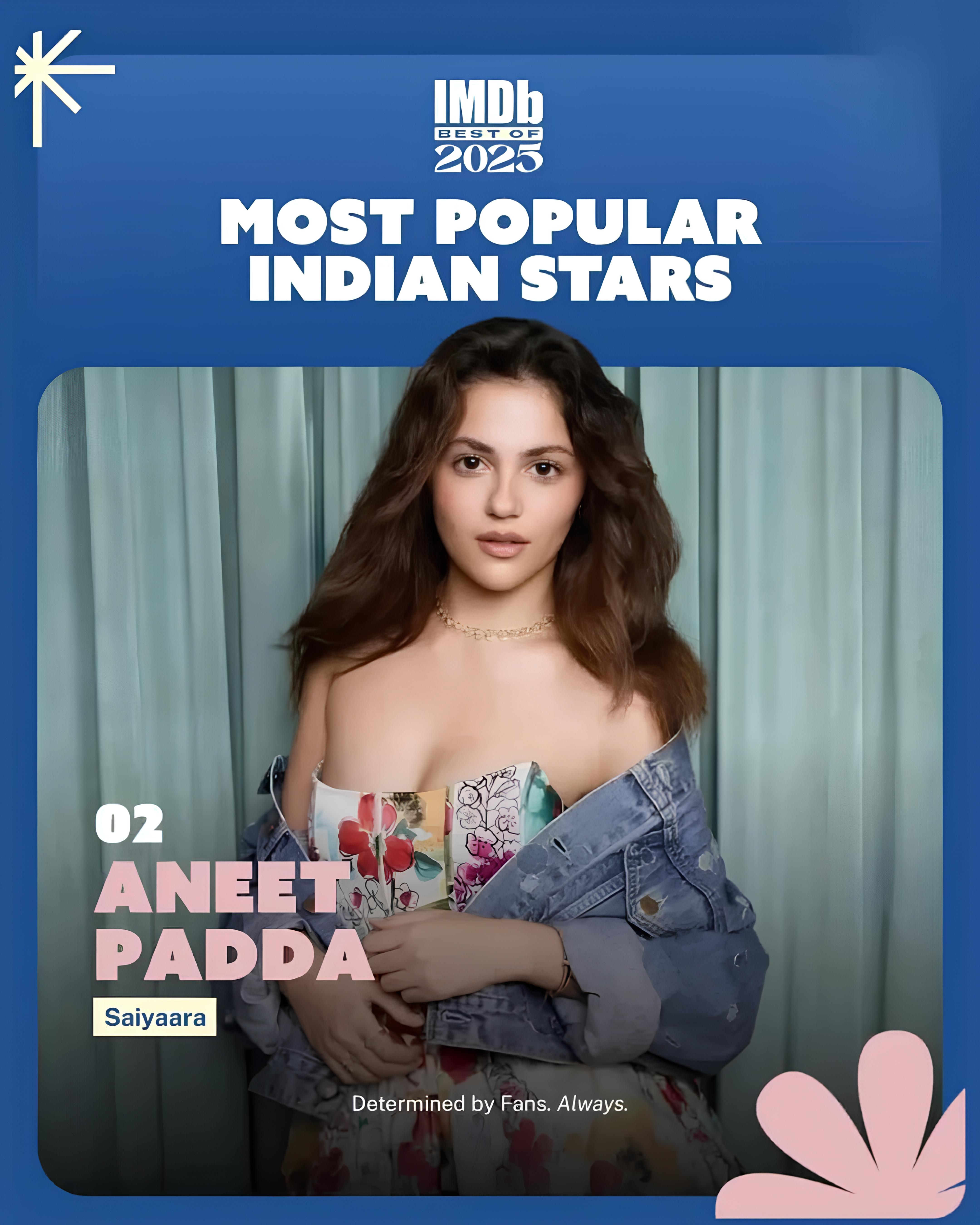 Rising to #2 on IMDb’s Most Popular Indian Stars of 2025, Aneet Padda. 🌟 Her role in Saiyaara kept audiences talking throughout 2025.